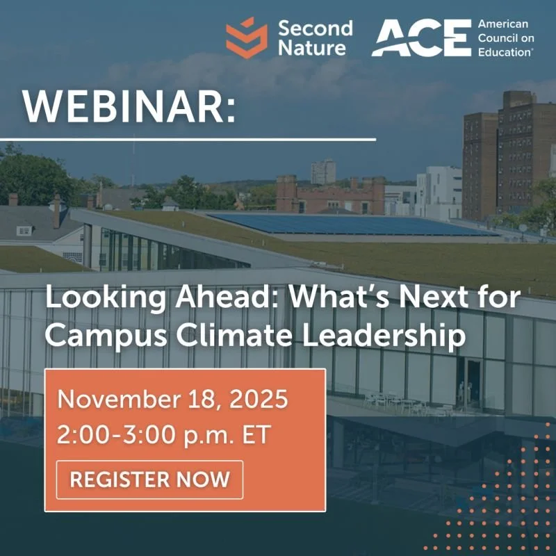 Join a new series of webinars—Charting Opportunities and Challenges in Higher Education's Climate Action Journey—tailored to help campus leaders and advocates anticipate challenges and identify opportunities to lead in this rapidly shifting policy landscape.